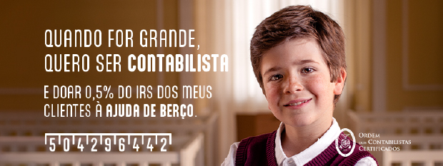 A Ajuda de Berço, com o apoio da Ordem dos Contabilistas Certificados lançou, a 29 de março, a sua campanha de consignação do IRS, onde, pela primeira vez, apela diretamente aos contabilistas certificados para que ajudem a instituição de solidariedade social. Na nota divulgada à imprensa, a Ajuda de Berço, uma instituição de solidariedade social vocacionada para dar apoio a bebés e crianças desprotegidas, refere que o objetivo é combater a falta de consignação do IRS que, segundo um estudo da consultora GFK, se situa nos 43 por cento, ou seja, quase metade dos contribuintes em Portugal não consigna 0,5 por cento do seu IRS a instituições devidamente habilitadas para o efeito. Nesse sentido, esta nova campanha, veiculada em diferentes meios de comunicação social, dirige-se, em particular, aos contabilistas certificados que podem ajudar a fazer a diferença na vida das instituições de solidariedade social, e neste caso particular, na vida da Ajuda de Berço. Vídeo promocional |