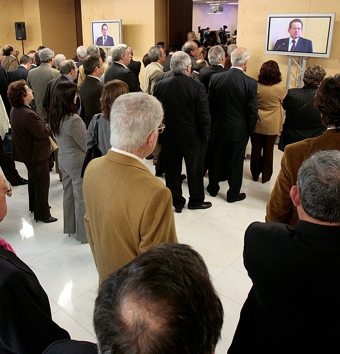 Praticamente um ano depois da inauguração das instalações da Avenida Barbosa du Bocage, a sede da Câmara foi, mais uma vez, palco de um evento de grande envergadura: a apresentação pública da Informação Empresarial Simplificada, vulgo IES. O interesse dos Técnicos Oficiais de Contas por esta funcionalidade que vai mudar o seu quotidiano profissional superou as melhores expectativas. Durante os 15 dias prévios ao evento, os serviços da CTOC receberam centenas de chamadas de profissionais a confirmar a sua presença. Nao foi, por isso, motivo de espanto que cerca de 600 pessoas tenham participado neste evento de especial simbolismo. Mesmo em fim de semana prolongado em virtude do feriado do 1.º de Maio, os profissionais fizeram-se ao caminho até Lisboa, provenientes de norte a sul do país e também das ilhas. As alterações que a IES acarreta nas rotinas dos TOC e a presença de altas individualidades do Governo e da administração pública aumentaram o interesse: aliás,importa sublinhar, não é todo todos os dias que três ministros, um secretário Estado e o Governador do Banco de portugal coincidem no mesmo espaço. Ingredientes de sobra para uma adesão massiva. Ainda os ponteiros não indicavam meio dia, três horas antes do horário programado, quando os primeiros profissionais chegaram à sede da CTOC. Os que ainda não tinham tido a oportunidade para conhecer a «sua» casa, não desperdiçaram o ensejo para realizar uma visita guiada ao edifício de seis andares. Pouco depois da hora do almoço, já se concentravam algumas dezenas de TOC no átrio principal da Instituição. Com o aproximar da hora marcada, as personalidades e outros convidados começavam a fazer a sua aparição, recebendo as boas vindas dos elementos da direcção da CTOC. Alda Carvalho, presidente do INE, João Tiago Silveira, secretário de Estado da Justiça, Maria Manuel Leitão Marques, presidente da Unidade de Coordenação da Modernização Administrativa (UCMA), Rogério Alves, bastonário da Ordem dos Advogados, Francisco Van Zeller, presidente da CIP, António Figueiredo, director geral dos Registos e do Notariado e Luís Pinto, director geral da DGITA, foram algumas das individualidades presentes. O ligeiro atraso do ministro das Finanças obrigou a um pequeno compasso de espera, aproveitado para TOC e demais convidados trocassem "dois dedos de conversa". A comunicaçãos social também não ficou alheia ao interesse mediático do acontecimento, tendo sido cerca de duas dezenas de jornalistas, repórteres e operadores de imagem, a cobrir a cerimónia. Entretanto, os TOC posicionavam-se ao longo do corredor que dava aceso ao auditório, procurando a melhor posição para assistir à transmissão da cerimónia nos dois plasmas colocados no exterior da sala. O primeiro a usar da palavra foi o anfitrião, Domingues de Azevedo, que começou por destacar o facto de este «acto simbólico e de enorme significado na vida das empresas portuguesas, acontecer na casa dos Técnicos Oficiais de Contas». O presidente da CTOC enalteceu contributo da IES para o «corte radical» numa forma de «exercer a gestão da causa pública» e mostrou-se convicto que os TOC, «os únicos profissionais a quem é cometida a responsabilidade da comunicação dos dados», tal como já o demonstraram no passado com a desmaterialização das declarações fiscais, «vão estar à altura do desafio que esta nova funcionalidade lhes coloca. Não tenho dúvidas que vencerão mais esta importante batalha na modernização da sociedade portuguesa». Domingues de Azevedo lembrou que a presença de 25 mil profissionais ao longo das acções de formação da IES no passado mês de Abril é a prova da dedicação dos TOC no contacto com esta nova realidade. «Queremos ser elementos activos na mudança da sociedade em que nos inserimos. Nesse objectivo pode o Governo contar sempre com o apoio e o trabalho empenhado dos TOC», concluiu. Coube a Diana Ettner, adjunta do secretário de Estado da Justiça, a apresentação formal da IES. A responsável do Ministério enumerou as vantagens da IES, especialmente a "fusão" de quatro obrigações cumpridas num único momento, e informou que estava em estudo a prorrogação do prazo de 30 de Junho para a entrega das declarações. «98 por cento das empresas vão poder integrar a IES», concretizou, Ettner. Ana Gonçalves, representante da DGITA, realizou uma simulação de entrega da IES, explicitando todos os passos, desde o processo de autenticação do TOC ate à fase da submissão da declaração e pagamento em Multibanco, dando cumprimento a esta obrigatoridedade fiscal e estatística. O ministro das Finanças,Teixeira dos Santos, referiu que esta iniciativa, para além de tornar a vida das empresas e dos TOC mais simples, ao unificar o cumprimento de quatro obrigações, questiona um «nível de burocracia que não era justificável face às tecnologias actualmente disponíveis». «A IES vai ao encontro das sugestões da Câmara dos Técnicos Oficiais de Contas e dos respectivos membros, que há vários anos vinham manifestando a necessidade de evitar a repetição de informação inerente à entrega a diversas entidades, de declarações materialmente semelhantes». Teixeira dos Santos acrescentou que este passo na «simplificação e facilitação» do cumprimento das obrigações perante a Administração Pública, melhora a «qualidade e a tempestividade da informação», para além de reduzir os «custos de contexto». Para finalizar, o titular da pasta das Finanças, aproveitou a ocasião para anunciar que, ainda este ano, no âmbito do Simplex 2007, está previsto «simplificar, desmaterializar e disponibilizar na internet a possibilidade de pagamento em prestações de dívidas em execução fiscal». Por seu turno, o Governador do Banco de Portugal, referiu que a «IES é o culminar de um projecto iniciado há 5 anos e a legislação nela contida contempla plena